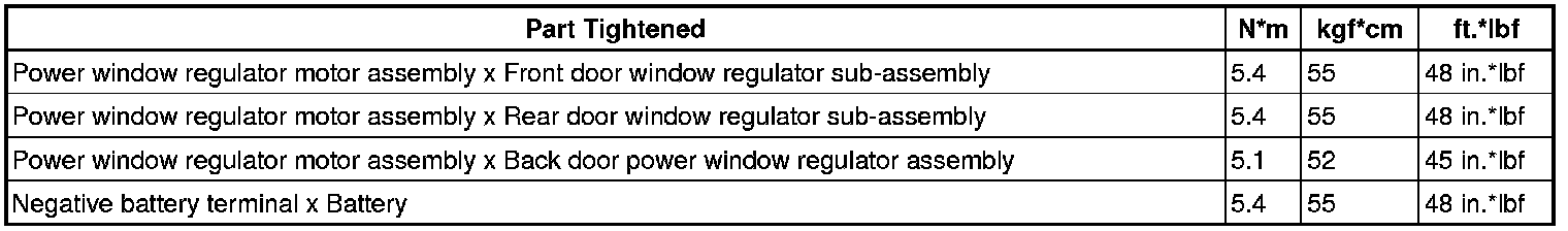 SPECIFICATIONS: WINDOW / GLASS: TORQUE SPECIFICATIONS