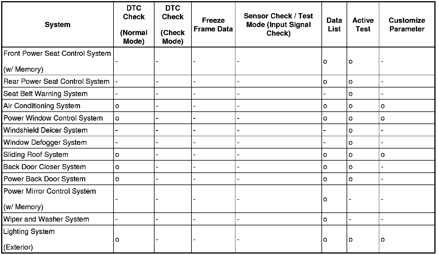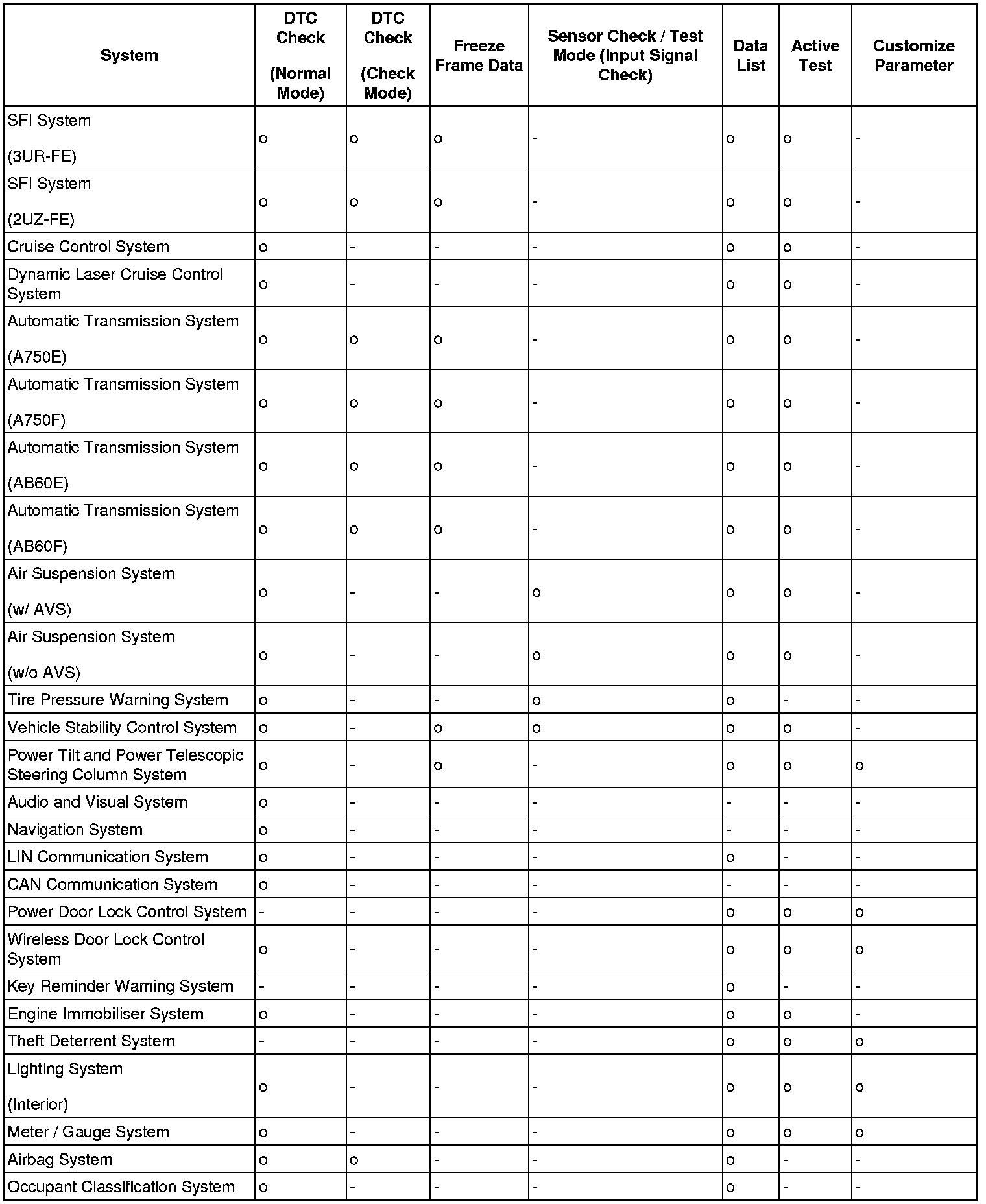 By using these functions, the problem areas can be narrowed down and troubleshooting is more effective. Diagnostic functions are incorporated in the following systems in the TOYOTA SEQUOIA.