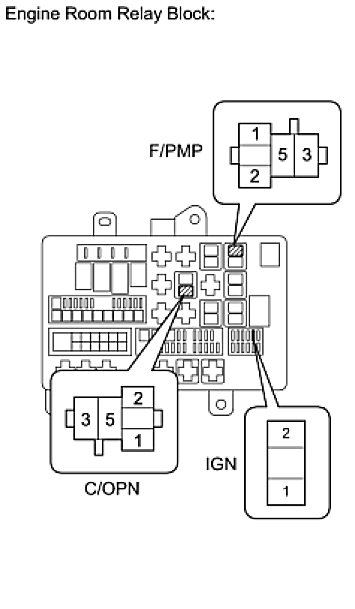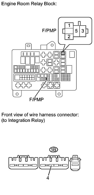 (b) Remove the fuel pump relay (F/PMP) from the engine room relay block.