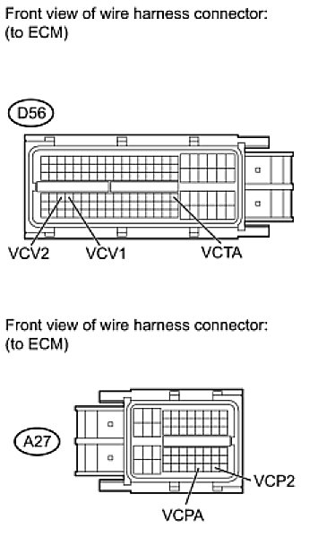 (l) Disconnect the VVT sensor (for Exhaust Side of Bank 2) connector.