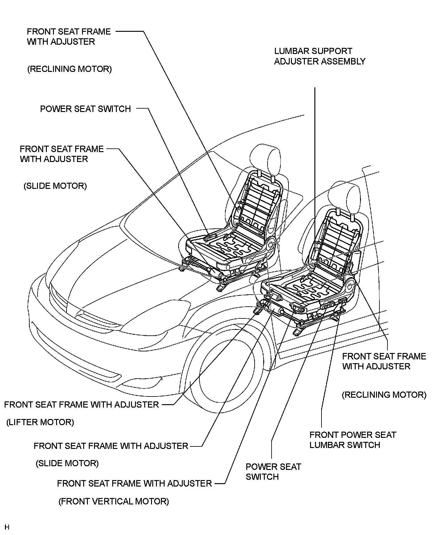 SEAT: FRONT POWER SEAT CONTROL SYSTEM: PARTS LOCATION