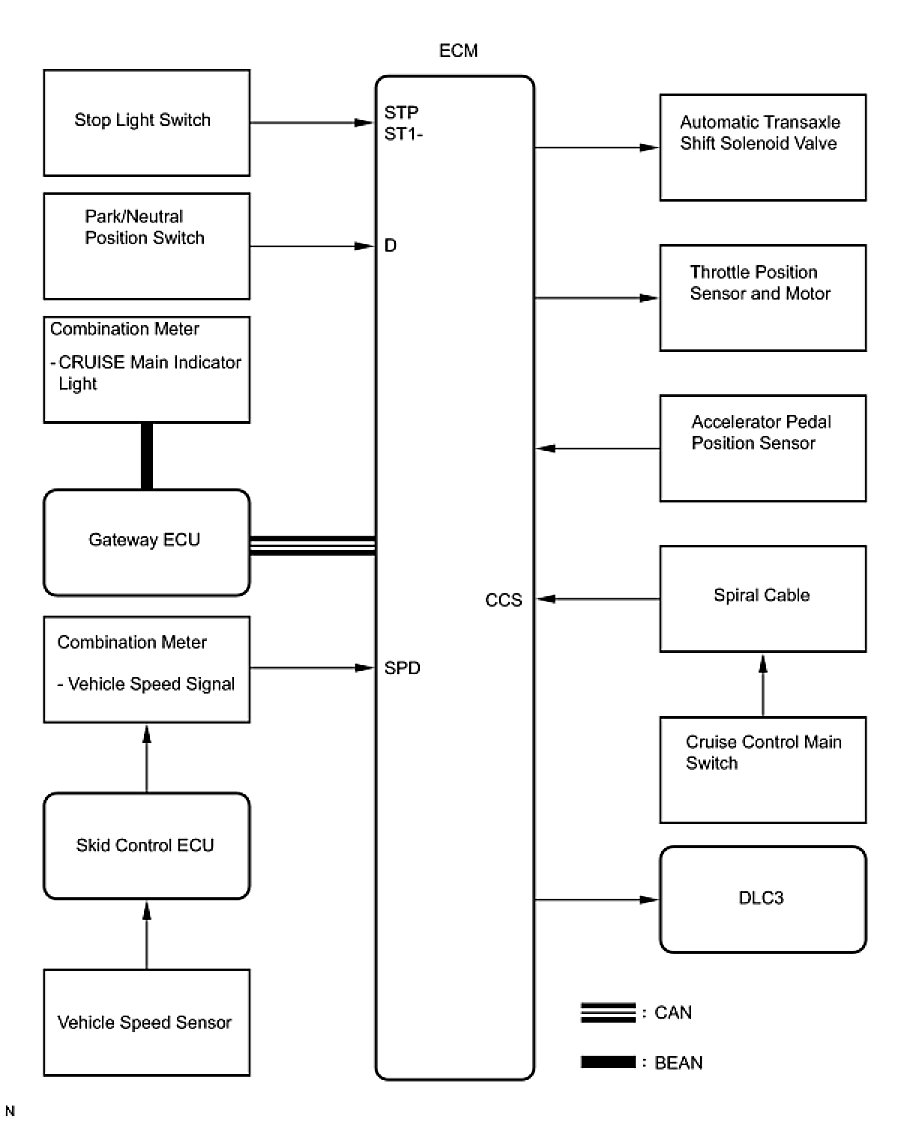 - The ECM cancels the cruise control system when the shift lever is moved from the D or 4 to the N, 3, 2 or L position, and the ECM receives a park/neutral position switch signal.