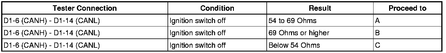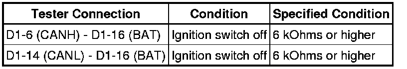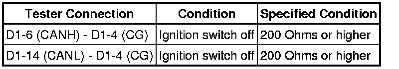 HINT: Operating the ignition switch, any switches, or any doors triggers related ECU and sensor communication with the CAN. This communication will cause the resistance value to change.