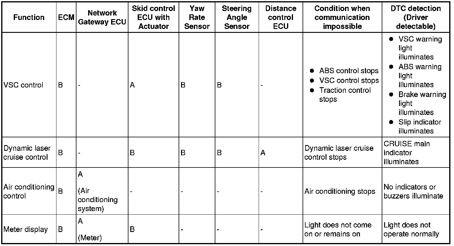 (b) The table below shows the effects on each system when communication is impossible. For further details, refer to each system.