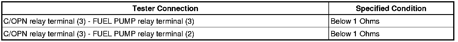 13. CHECK HARNESS AND CONNECTOR (C/OPN RELAY - FUEL PUMP RELAY)