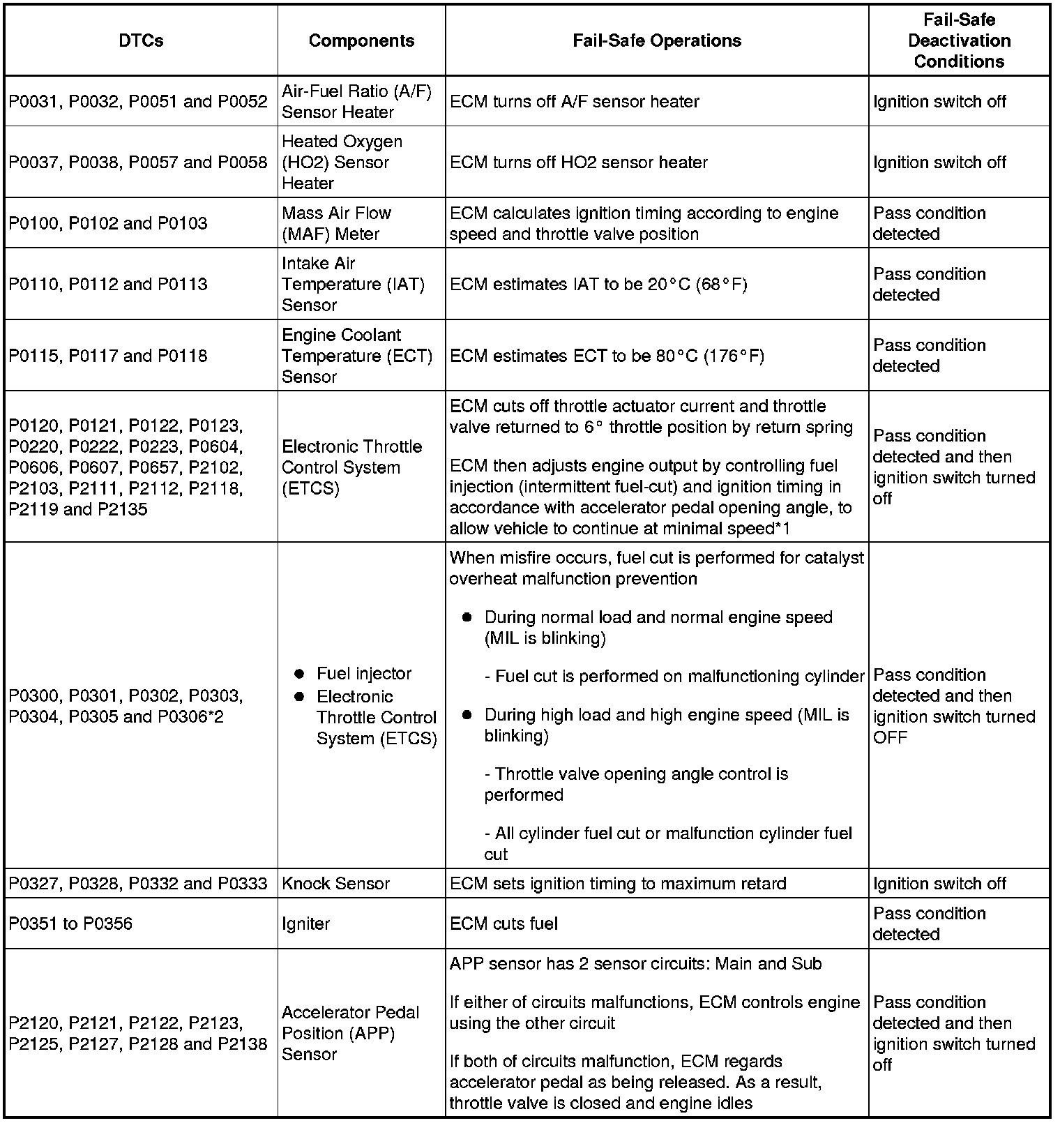 - *2: Misfire related fail-safe operations occur when catalyst overheat malfunctions occur.