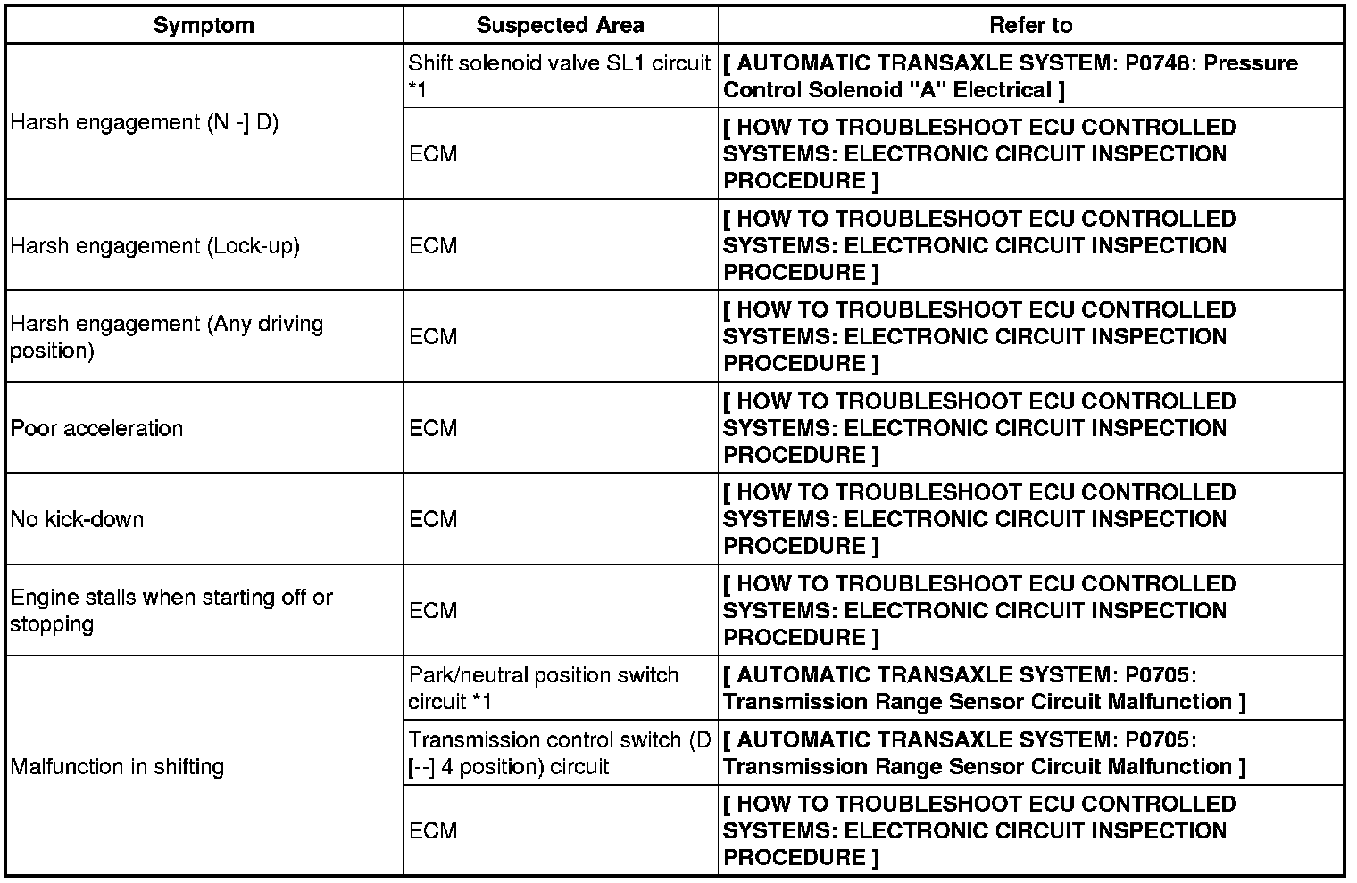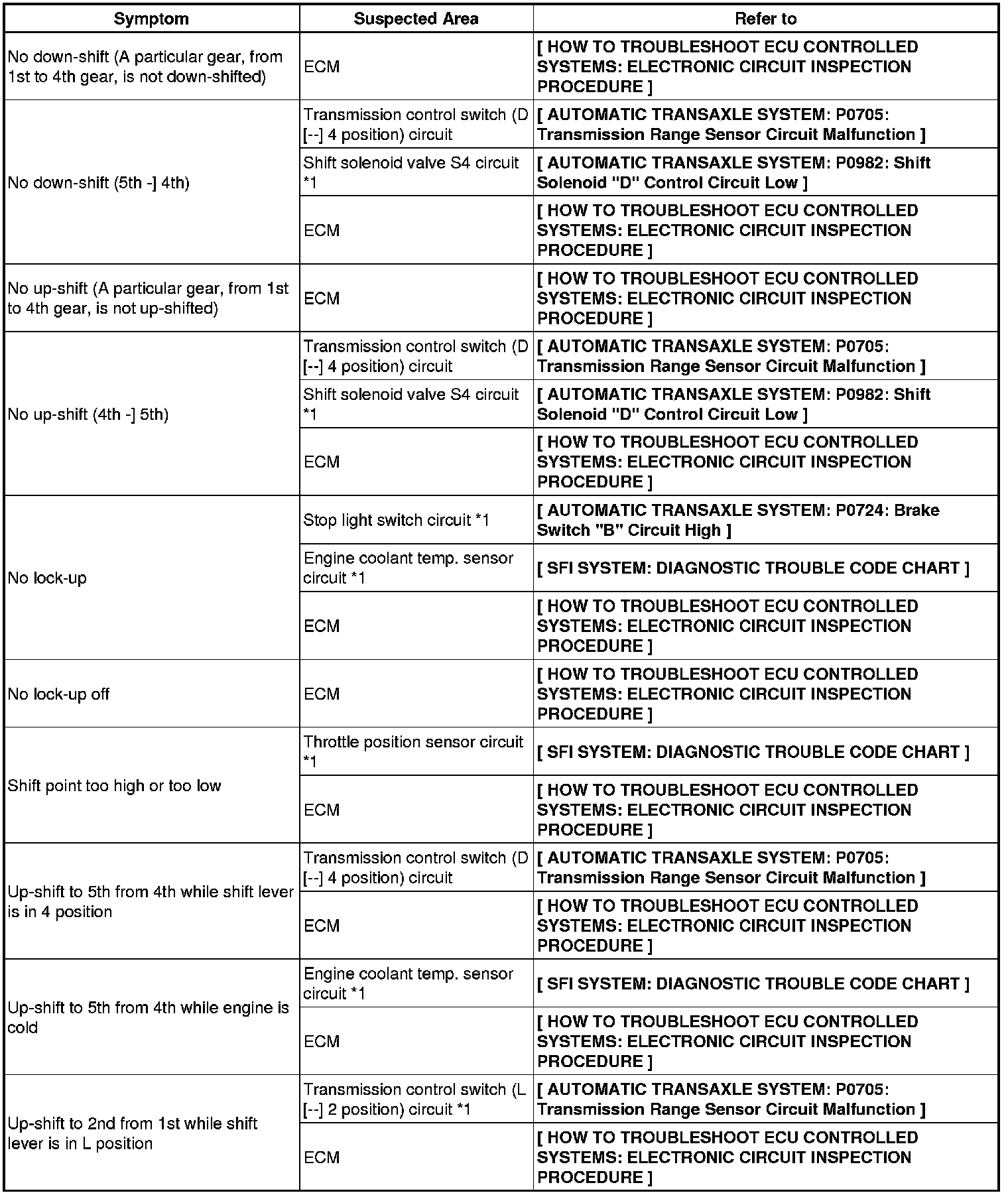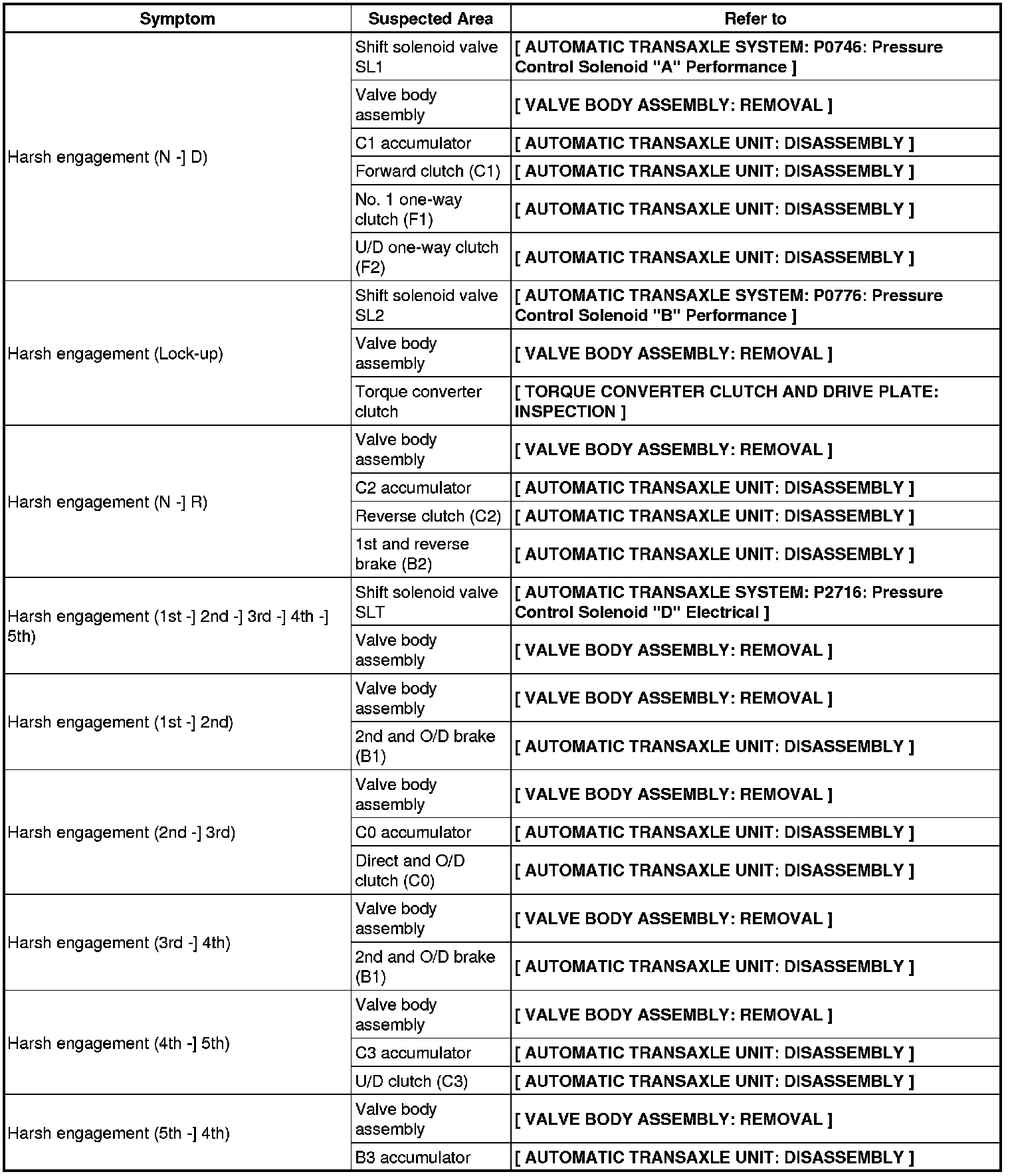 U151F AUTOMATIC TRANSAXLE: AUTOMATIC TRANSAXLE SYSTEM: PROBLEM SYMPTOMS TABLE