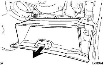 (b) Pull the glove compartment door sub-assembly rearward to remove it.