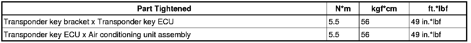 SERVICE SPECIFICATIONS: ENGINE IMMOBILISER: TORQUE SPECIFICATIONS