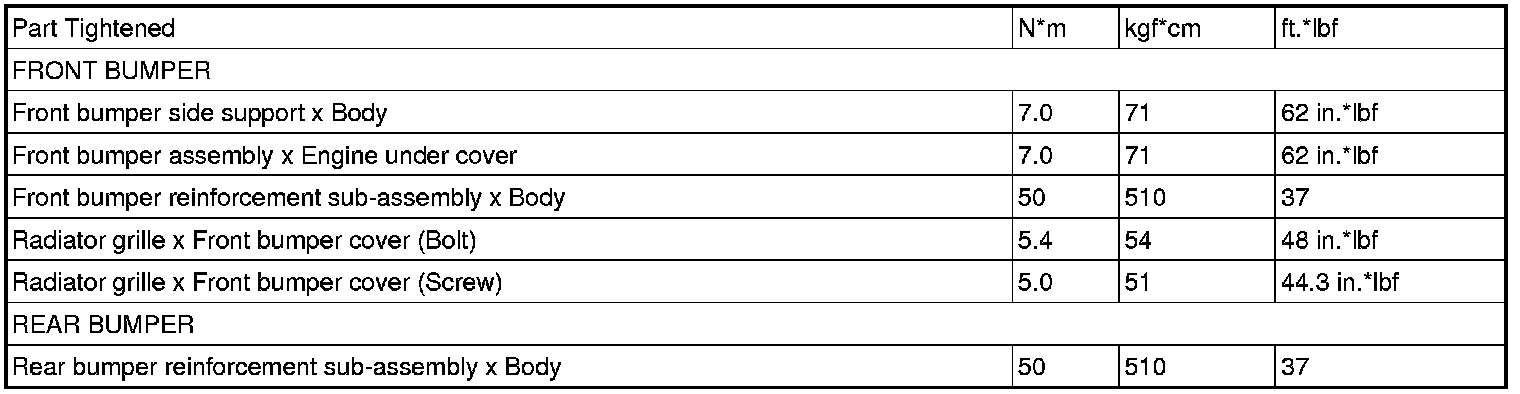 SERVICE SPECIFICATIONS: EXTERIOR: TORQUE SPECIFICATIONS