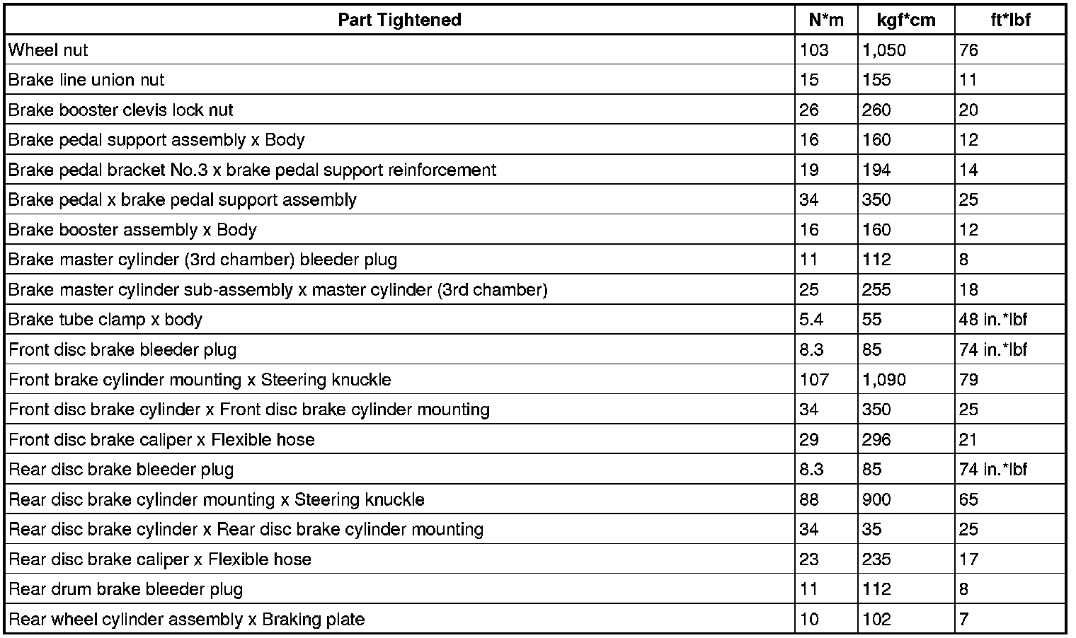 SERVICE SPECIFICATIONS: BRAKE: TORQUE SPECIFICATIONS
