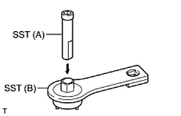 (f) Loosen the pulley by turning SST (B) in the direction shown in the illustration.