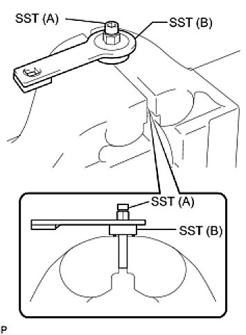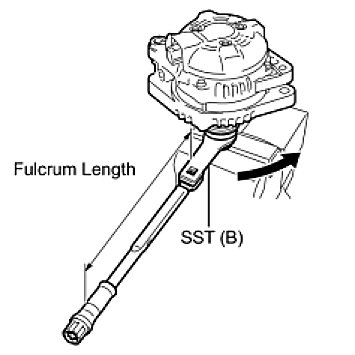 (f) Tighten the pulley by turning SST (B) in the direction shown in the illustration.