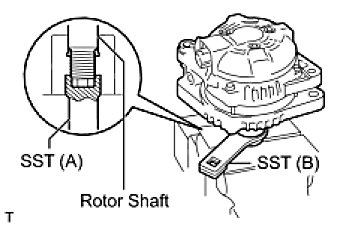 (d) Place the rotor shaft end into SST (A).