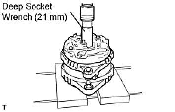 (a) Using a deep socket wrench (21 mm) and a press, slowly press in the generator coil assembly.