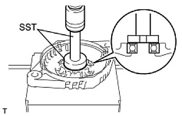 (b) Using SST and a hammer, tap out the drive end frame bearing from the drive end frame.