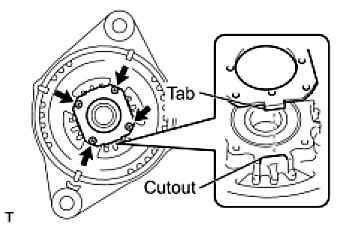 (d) Fit the tabs on the retainer plate into the cutouts on the drive end frame to install the retainer plate.