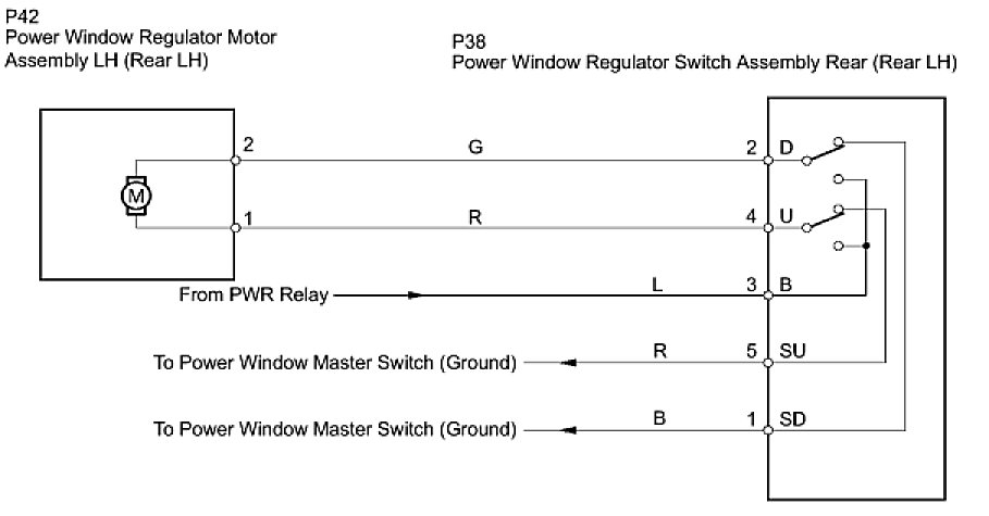 If the manual UP/DOWN function does not operate, the power window motor, the regulator switch or the wire harness may be malfunctioning.