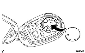 (a) Install a new battery (lithium battery) with the positive (+) side up, as shown in the illustration.