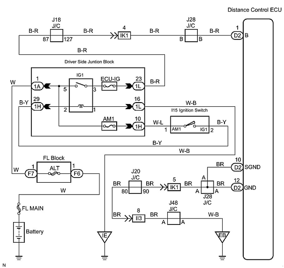 Distance Control ECU Power Source Circuit