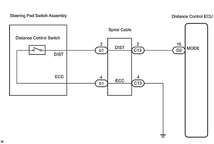HINT: When a malfunction is detected in the distance control switch, replace the steering pad switch assembly.