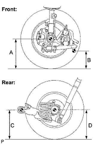 NOTE: Before inspecting the wheel alignment, adjust the vehicle height to the specified value.