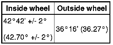 HINT: If the right and left inside wheel angles are not as specified, check the right and left rack end lengths.