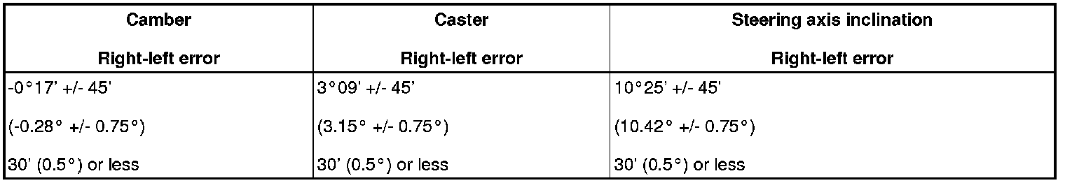 - If the camber is not within the specified value, using the following table, estimate how much additional camber adjustment will be required, and select the camber adjusting bolt.