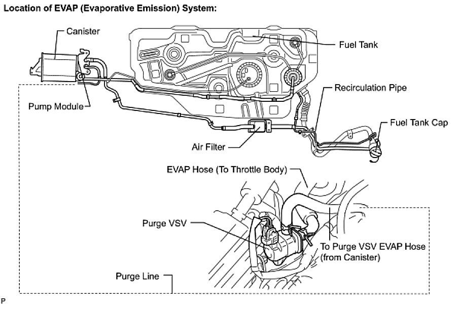 While the engine is running, if a predetermined condition (closed-loop, etc.) is met, the purge VSV is opened by the ECM and fuel vapors stored in the canister are purged to the intake manifold. The ECM changes the duty cycle ratio of the purge VSV to control purge flow volume.