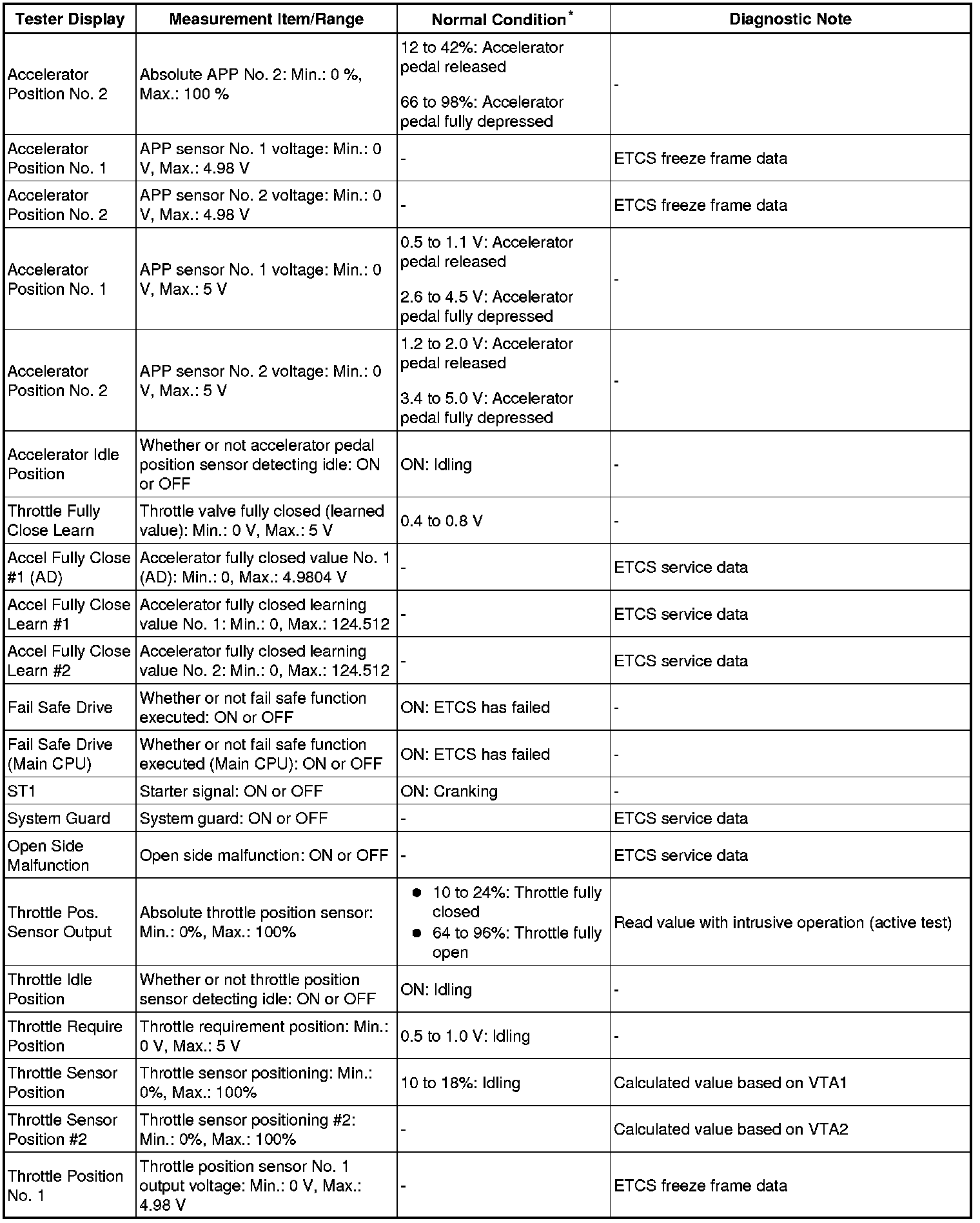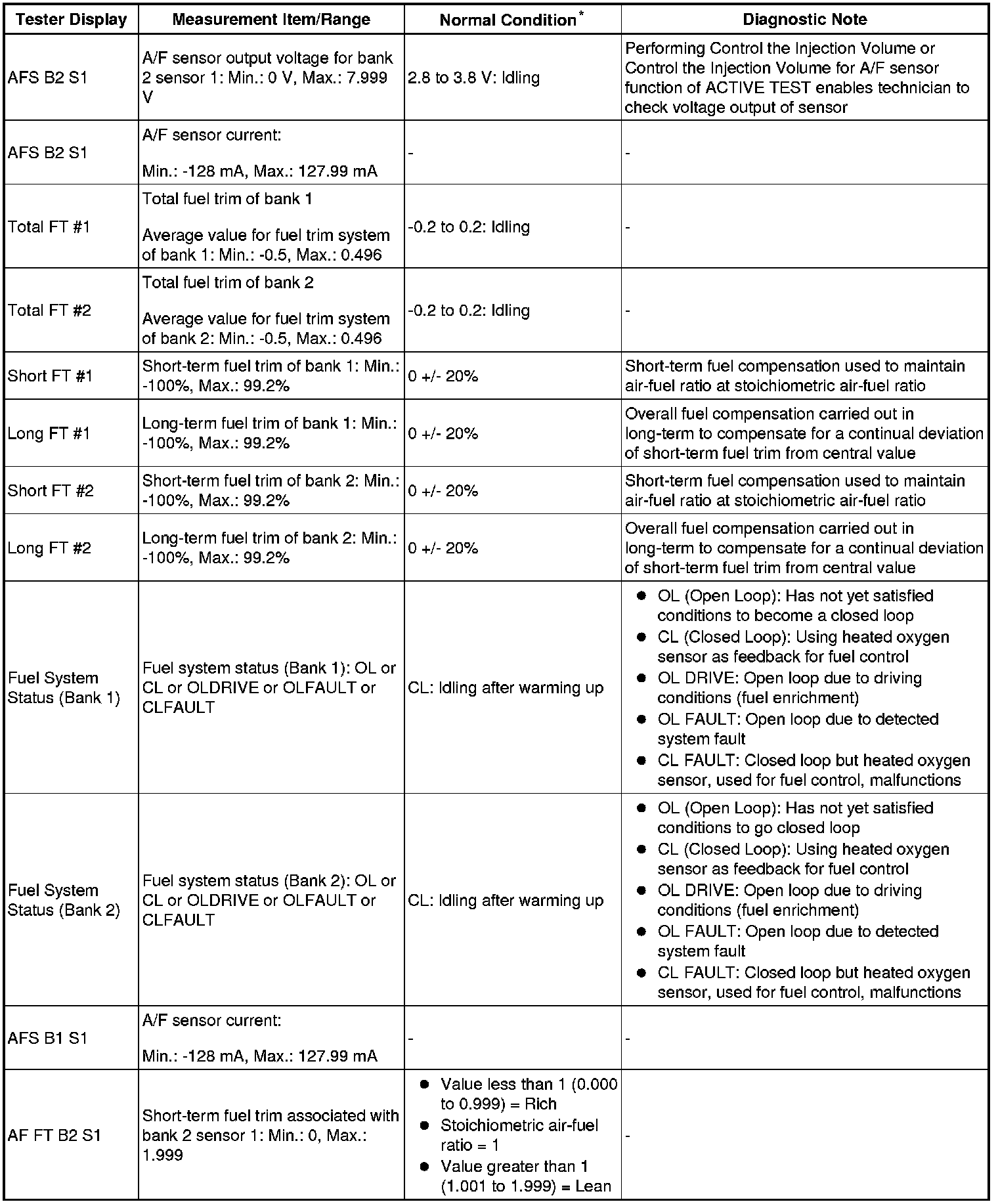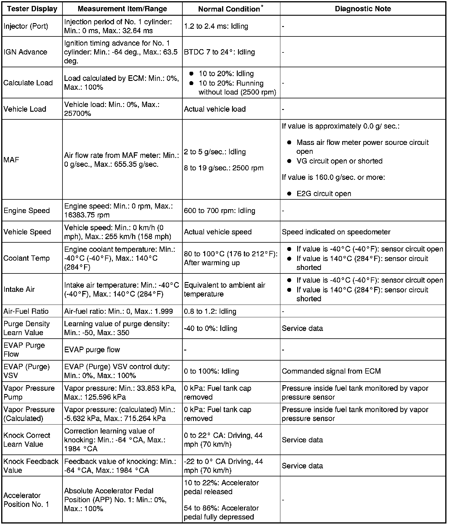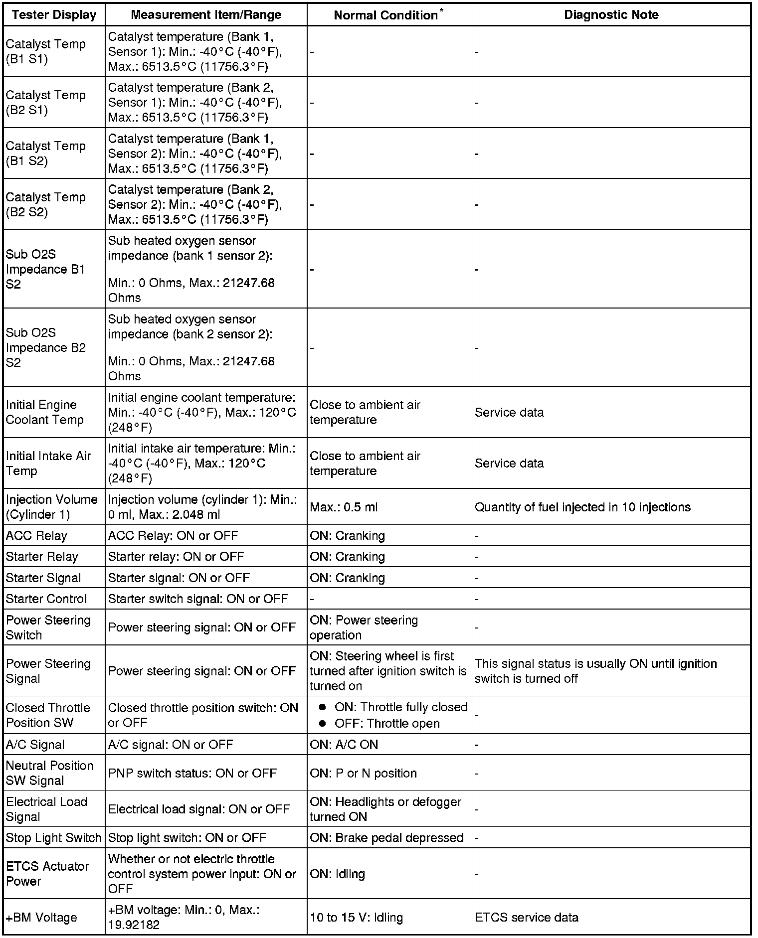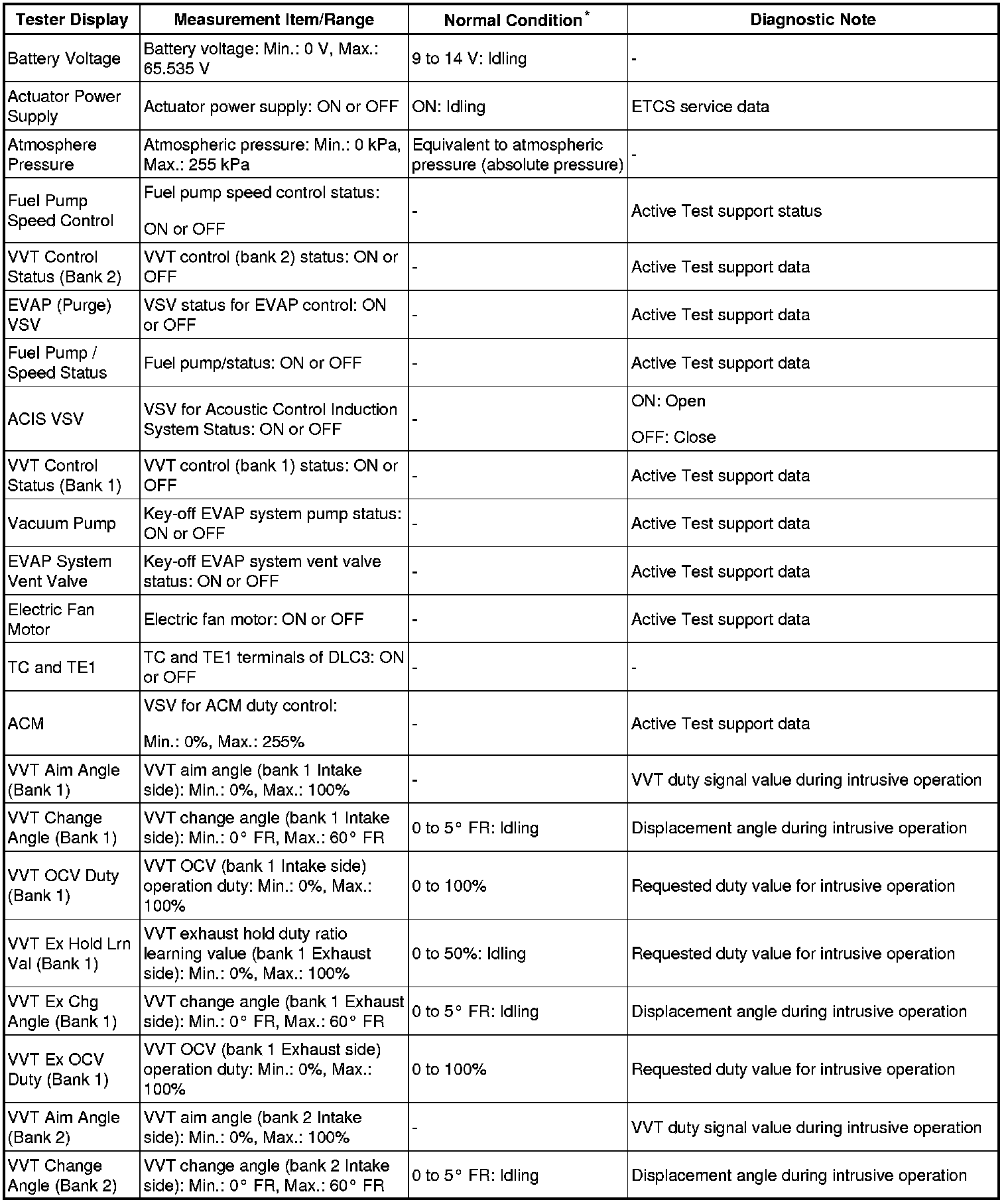 HINT: Reading the Data List displayed on Techstream enables values, including those of the switches, sensors, and actuators, to be checked without removing any parts. Reading the Data List as the first step in troubleshooting is one method to shorten diagnostic time.