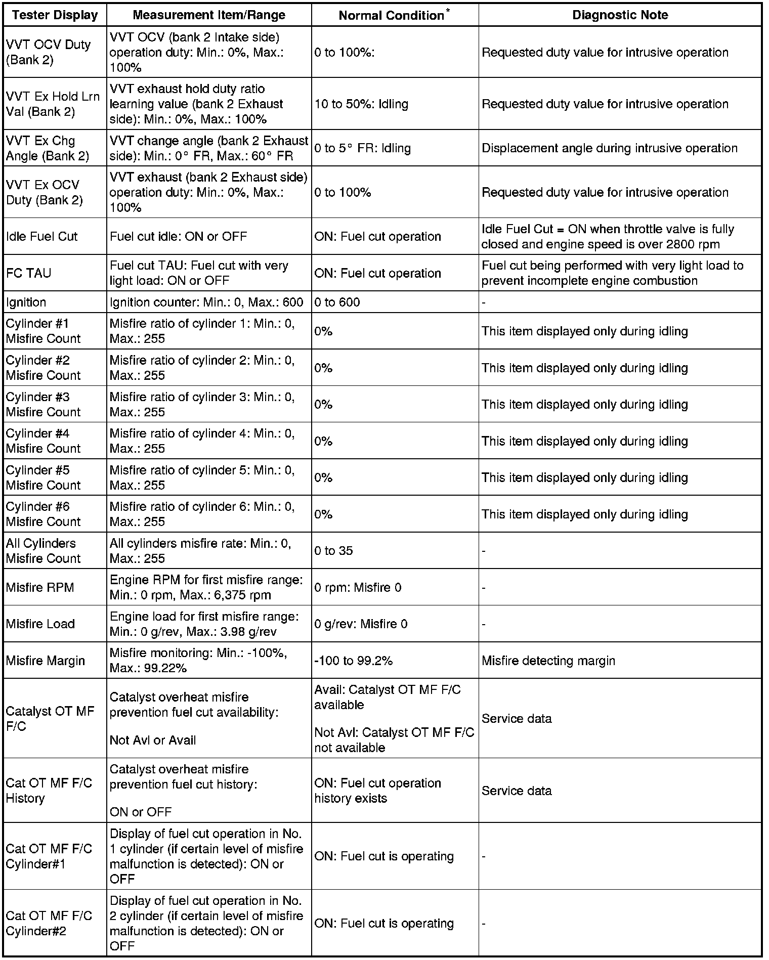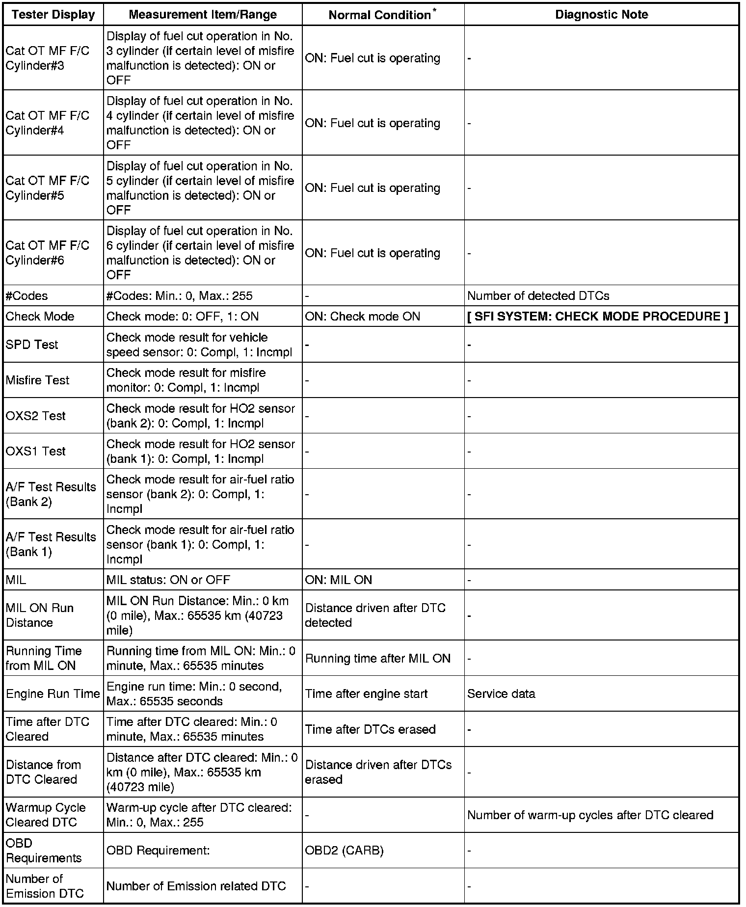NOTE: *1: If the display of the Data List's Catalyst OT MF F/C item is Not Avl, perform this Active Test with the vehicle stopped and the engine idling. If the display of the Data List's Catalyst OT MF F/C item is Avail, perform this Active Test as described below.
