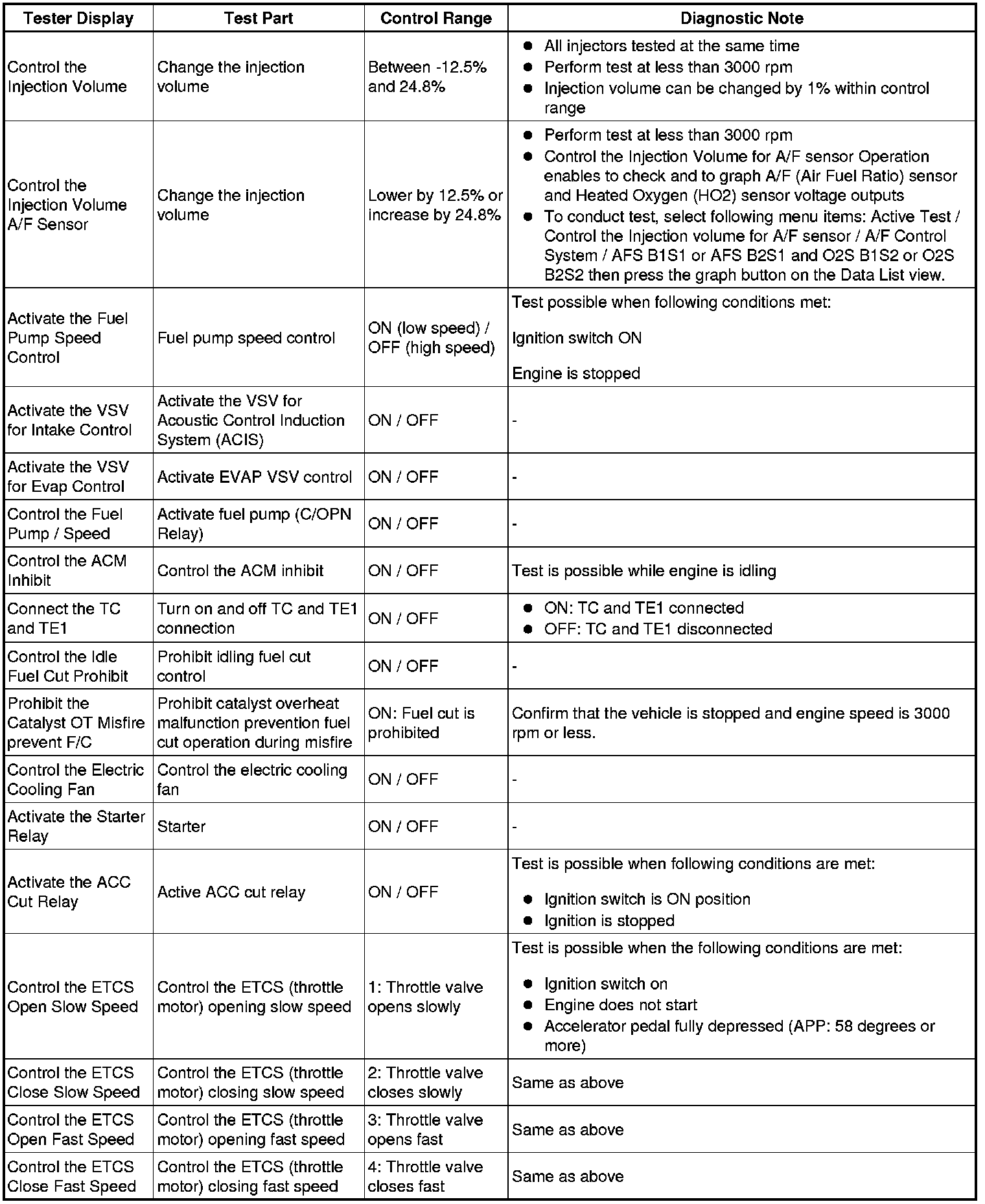 HINT: Performing an Active Test enables components including the relays, VSV (Vacuum Switching Valve), and actuators, to be operated without removing any parts. The Active Test can be performed with Techstream. Performing an Active Test in the first step in troubleshooting is one method to shorten diagnostic time.