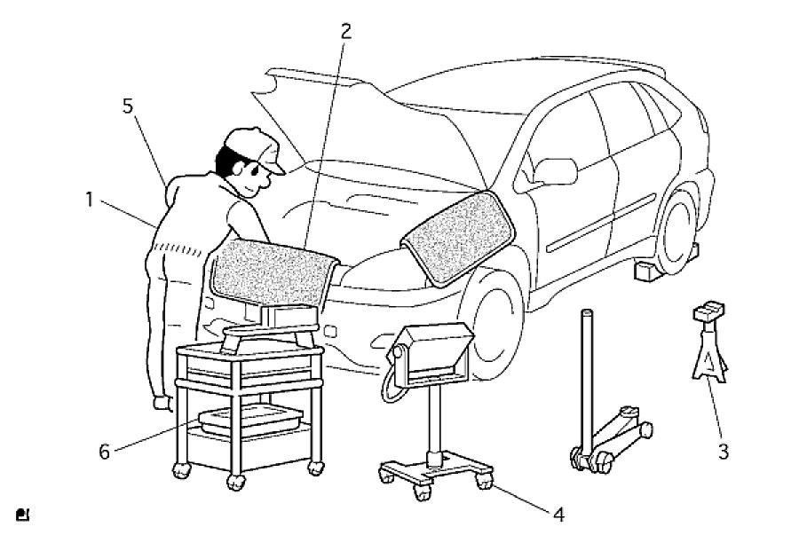 (1) Care must be taken when jacking up and supporting the vehicle. Be sure to lift and support the vehicle at the proper locations.