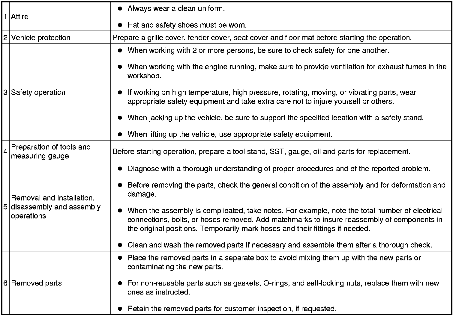 - Therefore, before beginning any such servicing or test, be sure to check the following items: