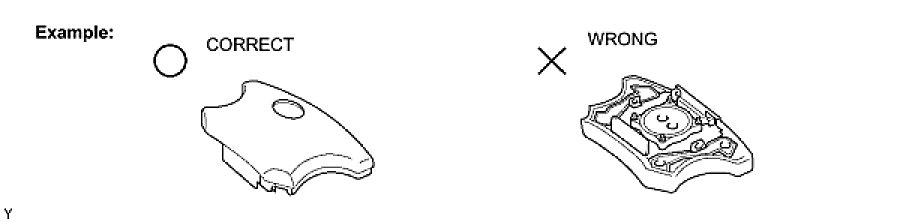 (1) Always place a removed or new steering pad surface upward as shown in the illustration. Placing the steering pad with the pad surface facing down could cause a serious accident if the airbag inflates. Also, do not place anything on top of the steering pad.