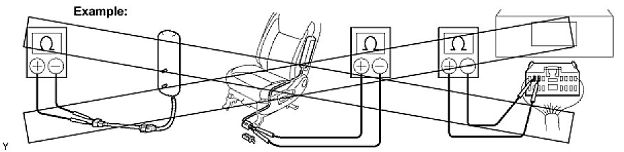 (2) Never measure the resistance of the airbag squib. This may cause the airbag to inflate, which could cause serious injury.