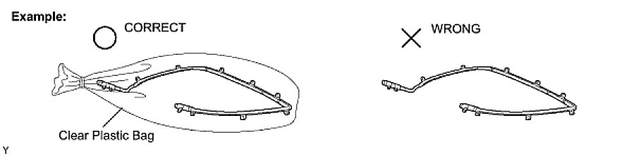 (1) Always place the removed or new curtain shield airbag assembly in a clear plastic bag, and keep it in a safe place.