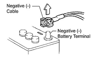 When the cable is disconnected from the negative (-) battery terminal, clock and audio system memory is erased. Before starting work, make a note of the settings of each memory system. When work is finished, reset the clock and audio system as before.