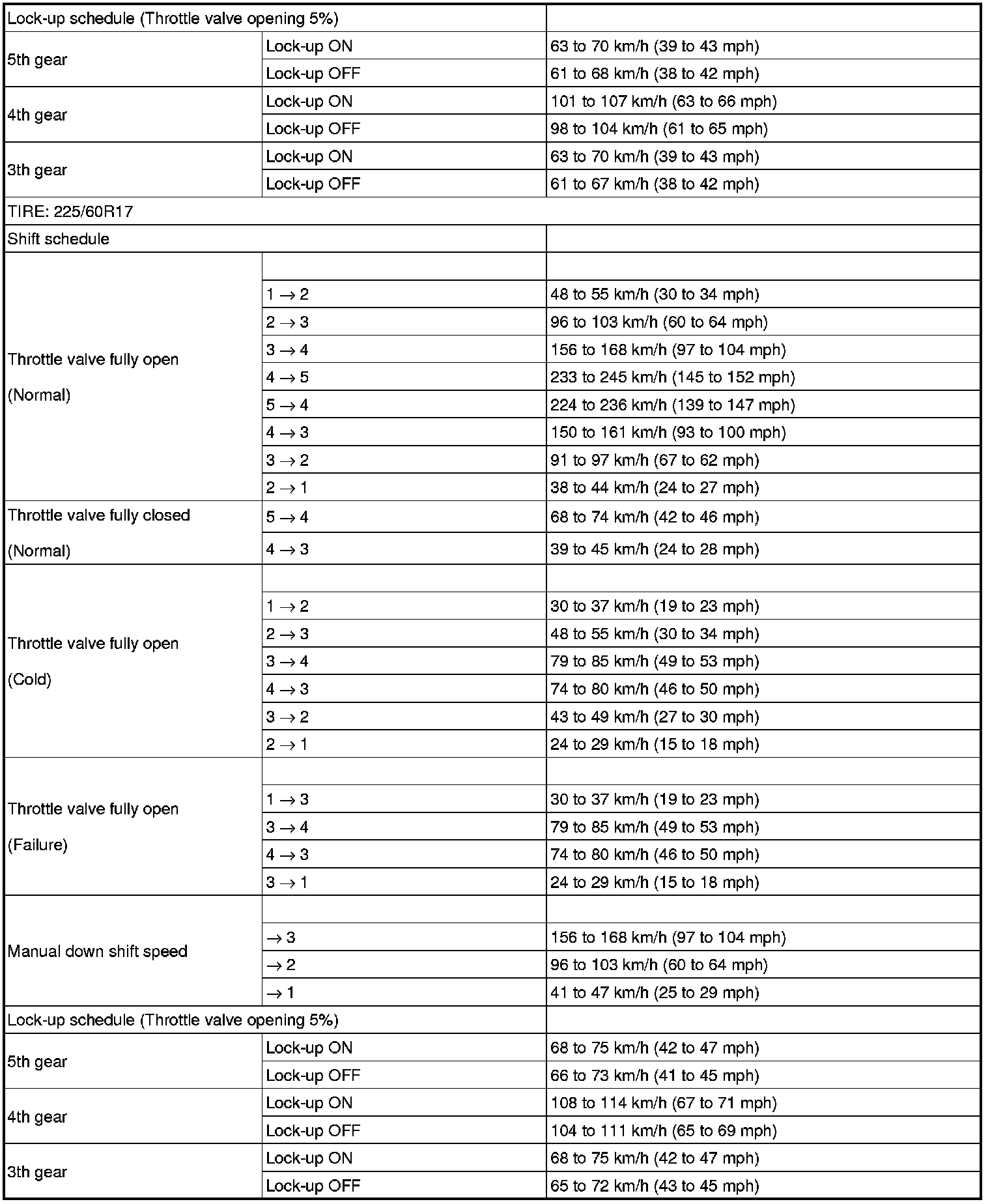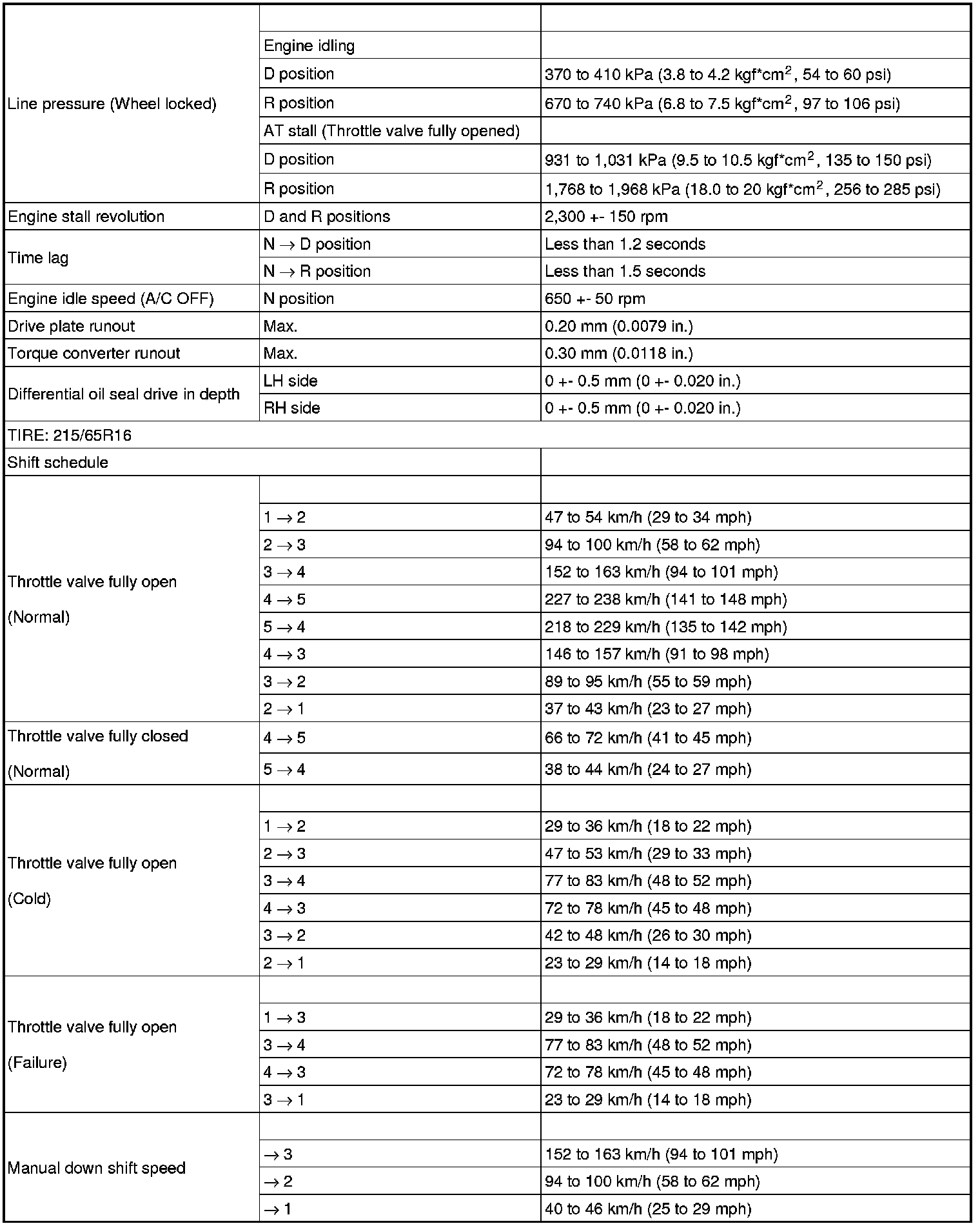 SERVICE SPECIFICATIONS: U151E AUTOMATIC TRANSAXLE: SERVICE DATA