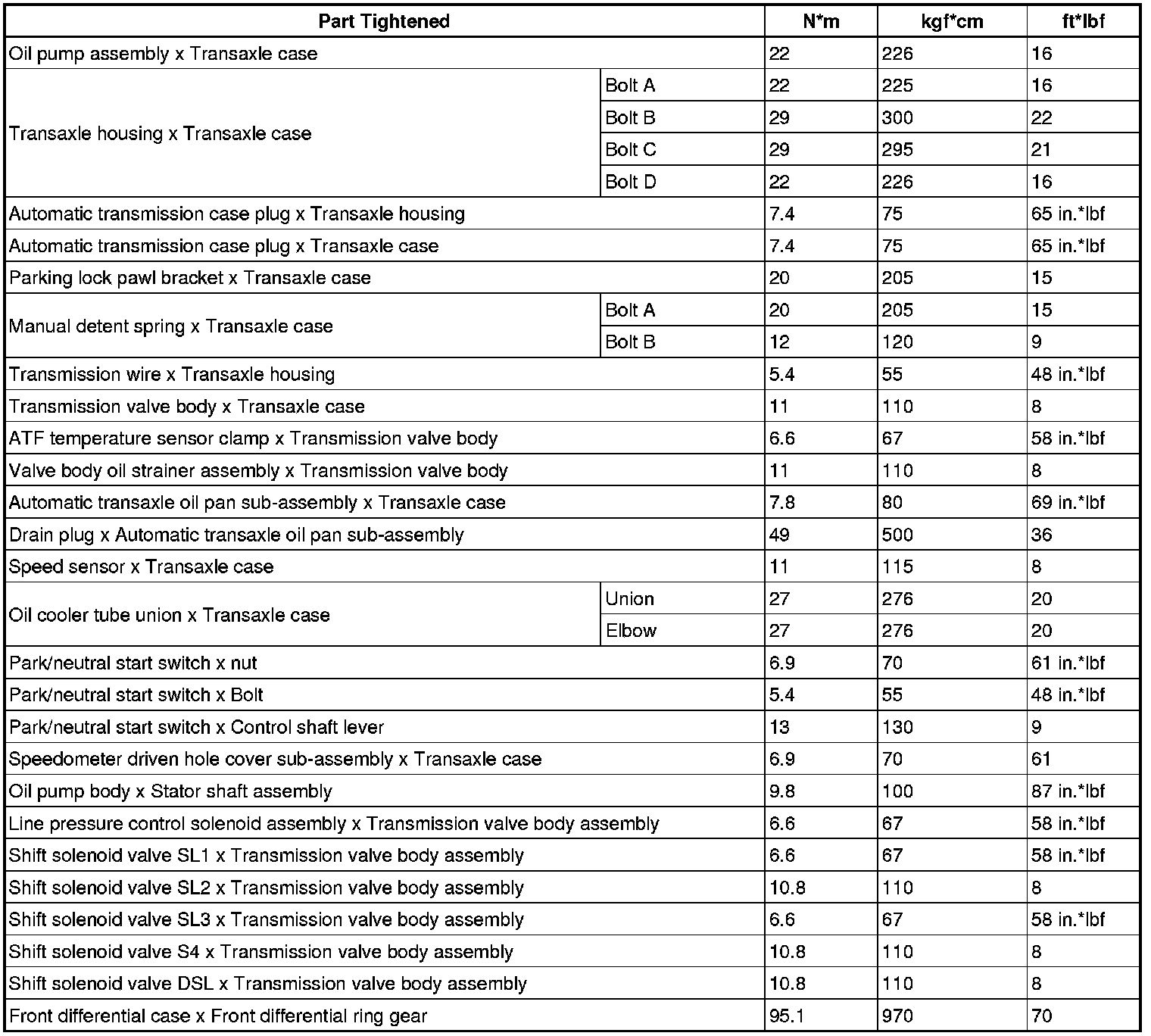 SERVICE SPECIFICATIONS: U151E AUTOMATIC TRANSAXLE: TORQUE SPECIFICATIONS