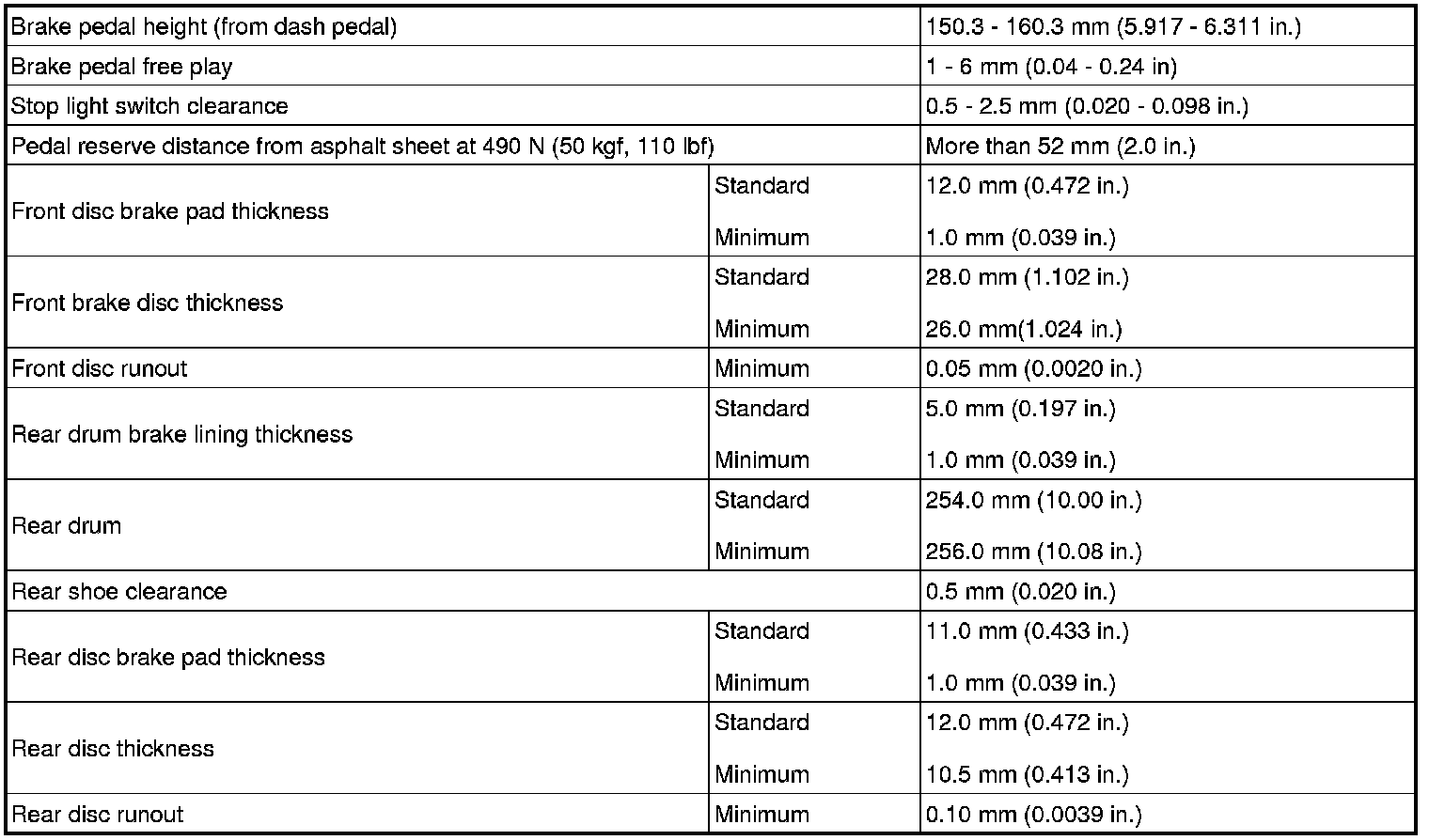 SERVICE SPECIFICATIONS: BRAKE: SERVICE DATA
