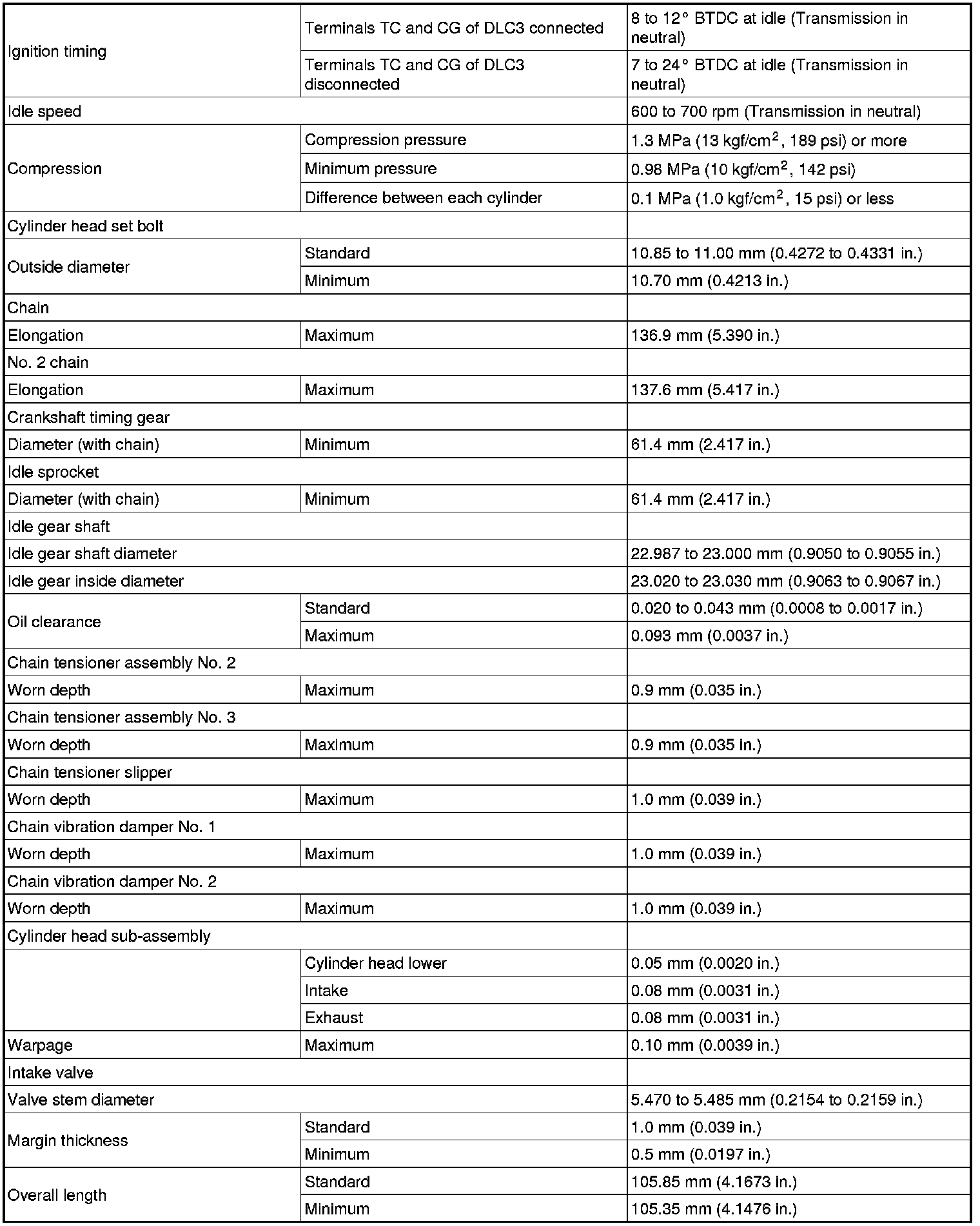 SERVICE SPECIFICATIONS: 2GR-FE ENGINE MECHANICAL: SERVICE DATA