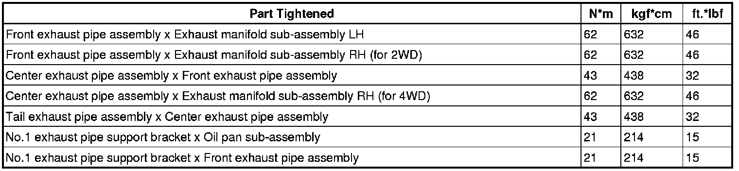 SERVICE SPECIFICATIONS: 2GR-FE EXHAUST: TORQUE SPECIFICATIONS