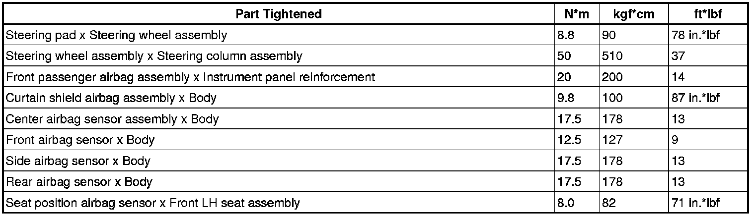 SERVICE SPECIFICATIONS: SUPPLEMENTAL RESTRAINT SYSTEM: TORQUE SPECIFICATIONS