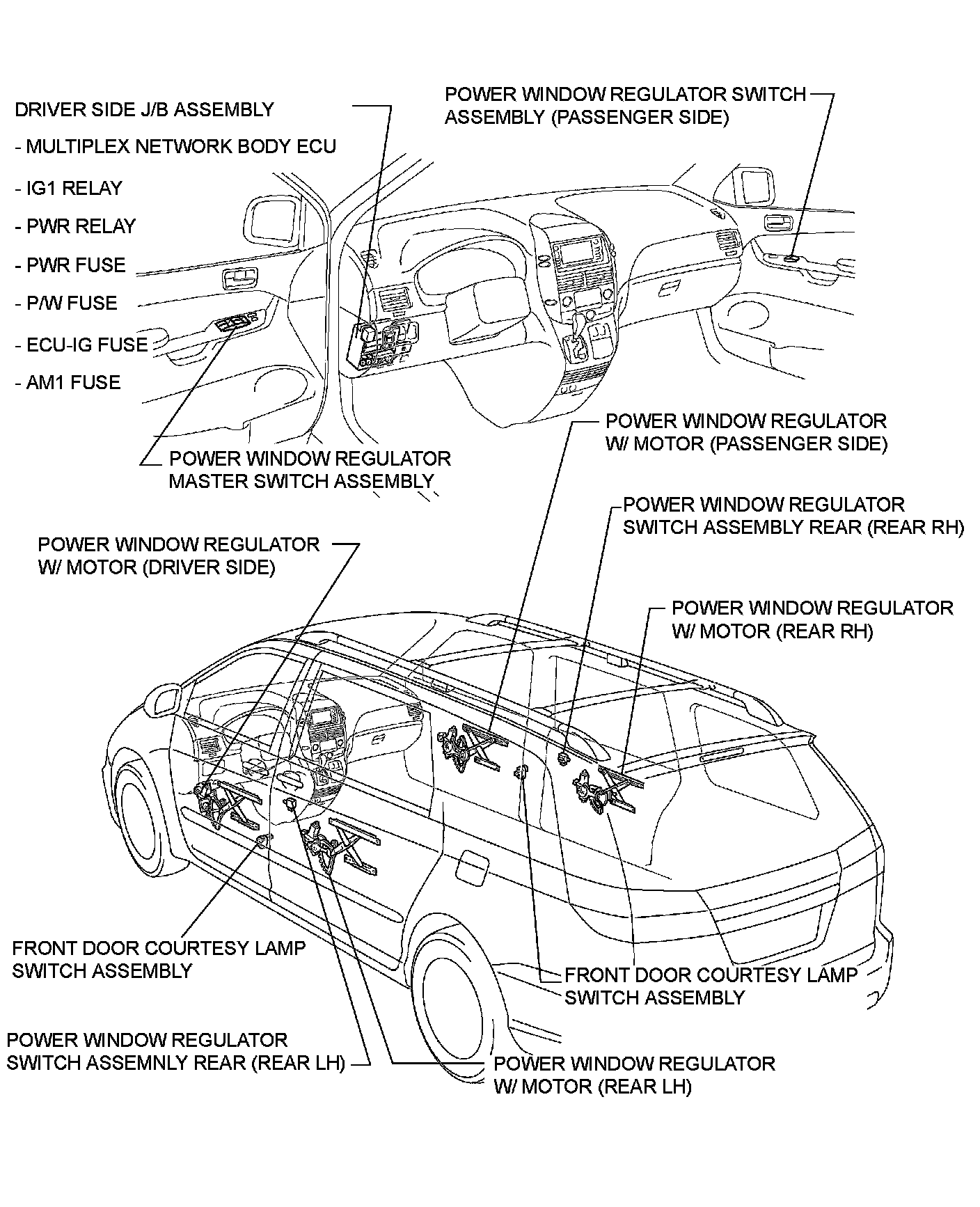 WINDSHIELD / WINDOWGLASS: POWER WINDOW CONTROL SYSTEM (w/ Jam Protection Function): PARTS LOCATION