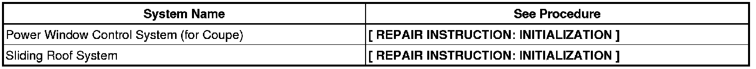 When disconnecting the negative (-) battery terminal, initialize the following system(s) after the terminal is reconnected.