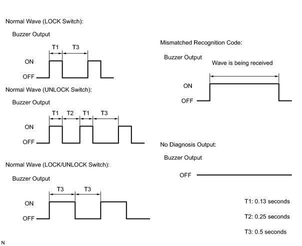 (c) Check that the system has switched to self-diagnostic mode by checking the wireless door lock buzzer sound. Compare the buzzer sound to the illustration on the left.