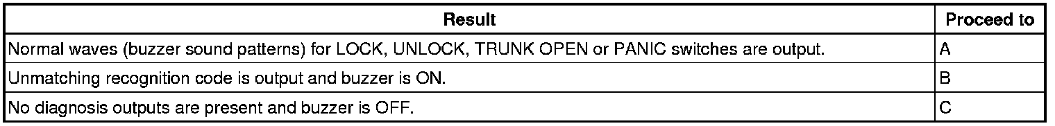 (a) Inspect the diagnosis outputs when the door control transmitter switch is held down. The diagnosis outputs can be checked by listening to the wireless door lock buzzer.