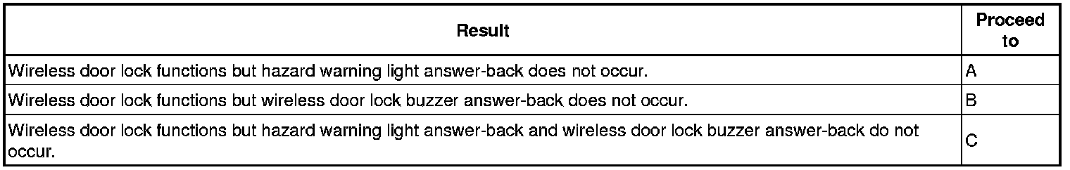 NG -- CHECK WIRELESS DOOR LOCK FUNCTIONS (STANDARD OPERATION)