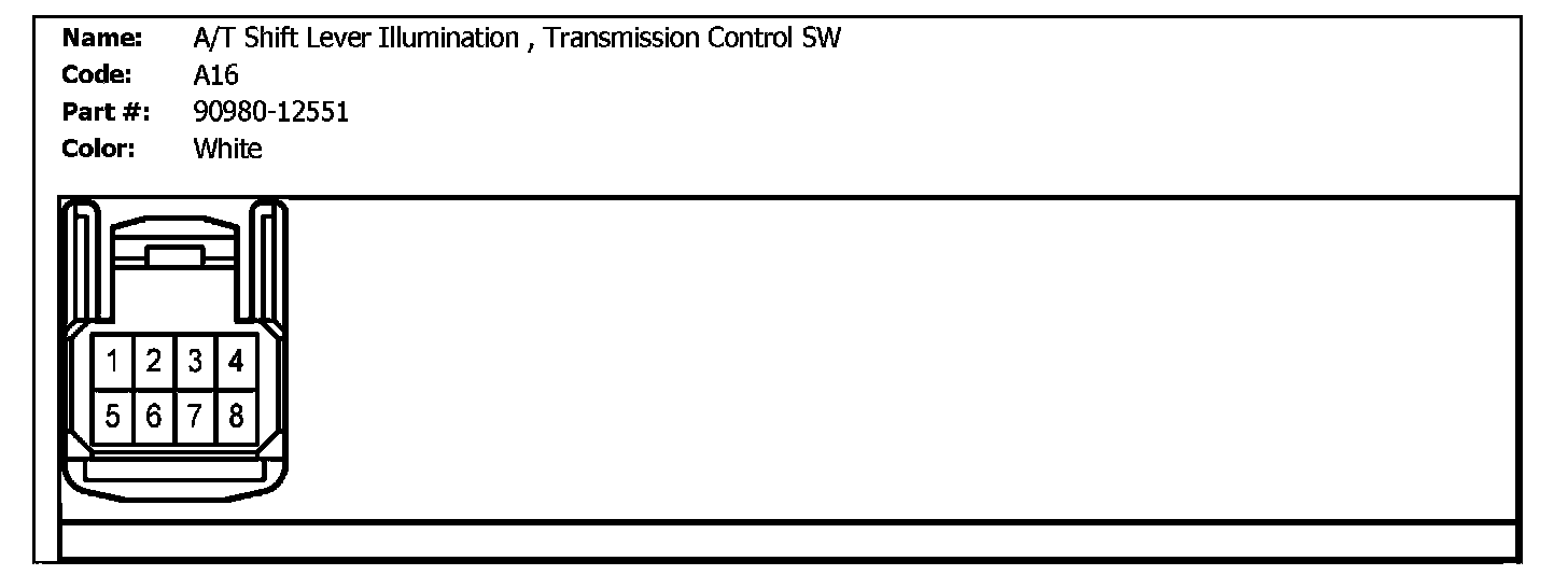A16 (A/T Shift Lever Illumination, Transmission Control SW):